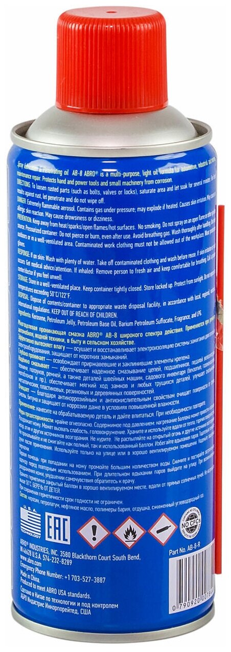 Смазка cпрей abro ab8 многоцелевая 450 мл ab-8-r 640 ₽