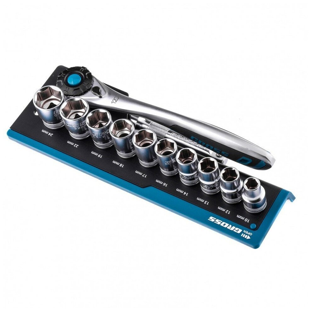 Набор торцевых головок, трещотка 120 зубьев, 12 предметов, 1/2", CrV Gross
