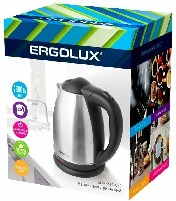 Чайник электр. ERGOLUX ELX-KS05-C02 промо нерж.сталь/пластик, диск 1.8л, индикатор, 220V 1600W черн
