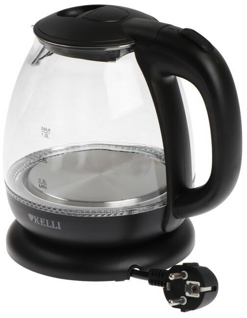 Чайник электрический KELLI KL-1370, стекло, 1 л, 1100 Вт, чёрный