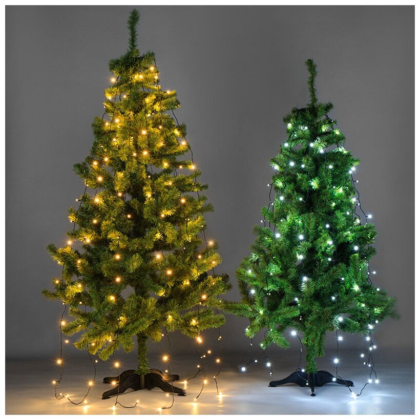 Елочная гирлянда с кольцом NEON-NIGHT 7 нитей по 1,8 метра, 8 режимов, 126 тепло-белых светодиодов, тёмно-зеленый провод
