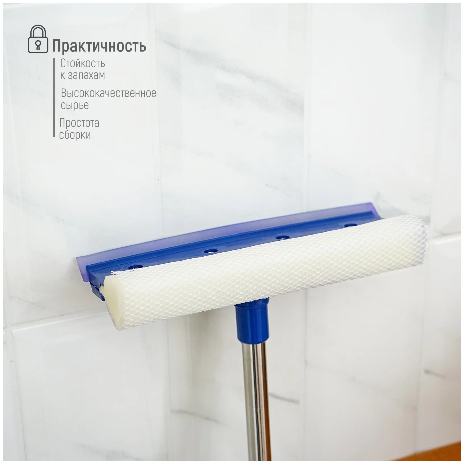 Доляна Окномойка с телескопической металлической окрашенной ручкой и сгоном Доляна, 20×49(75) см, поролон, цвет синий