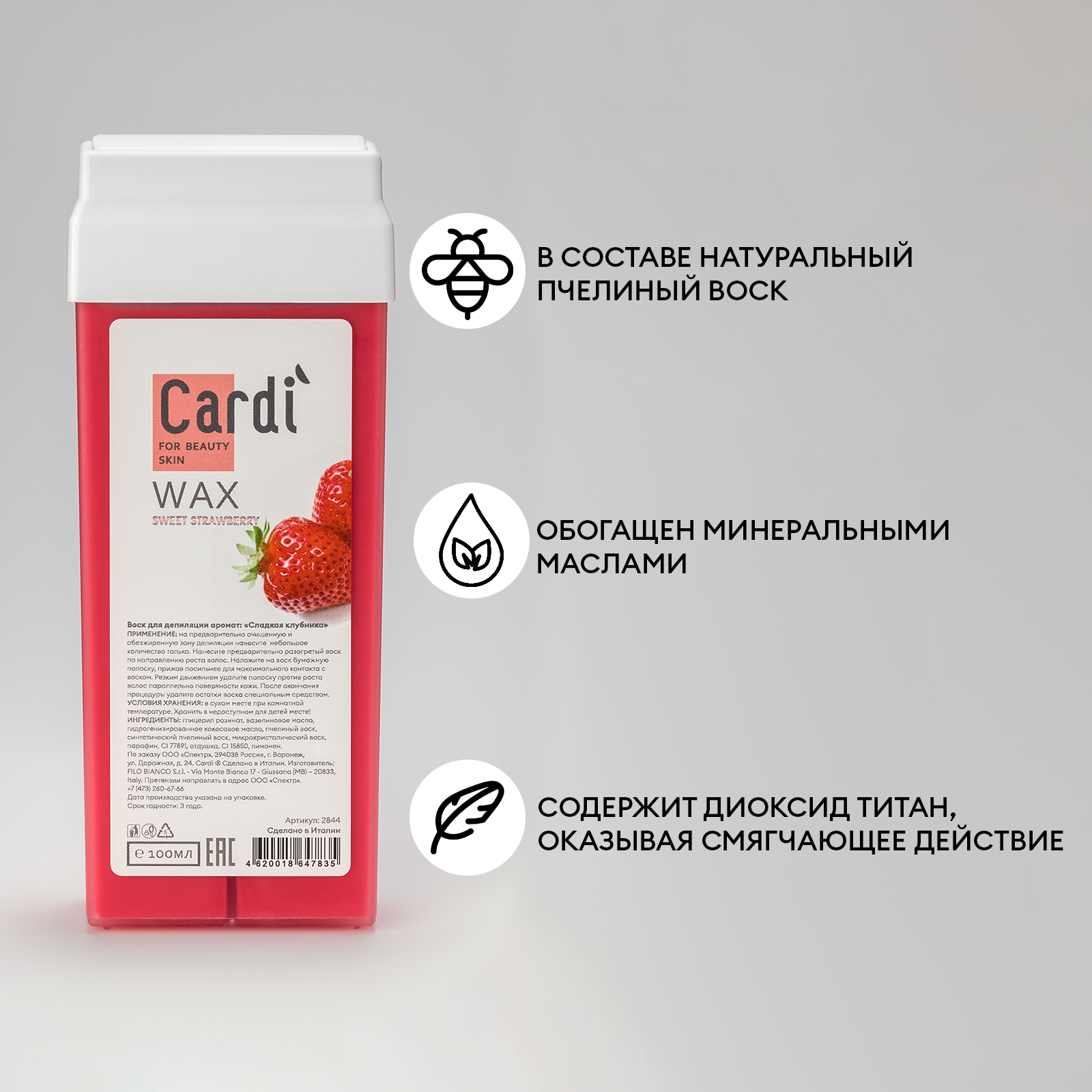 Воск для депиляции Cardi (аромат "Сладкая клубника"), 100 мл №2844 информация: