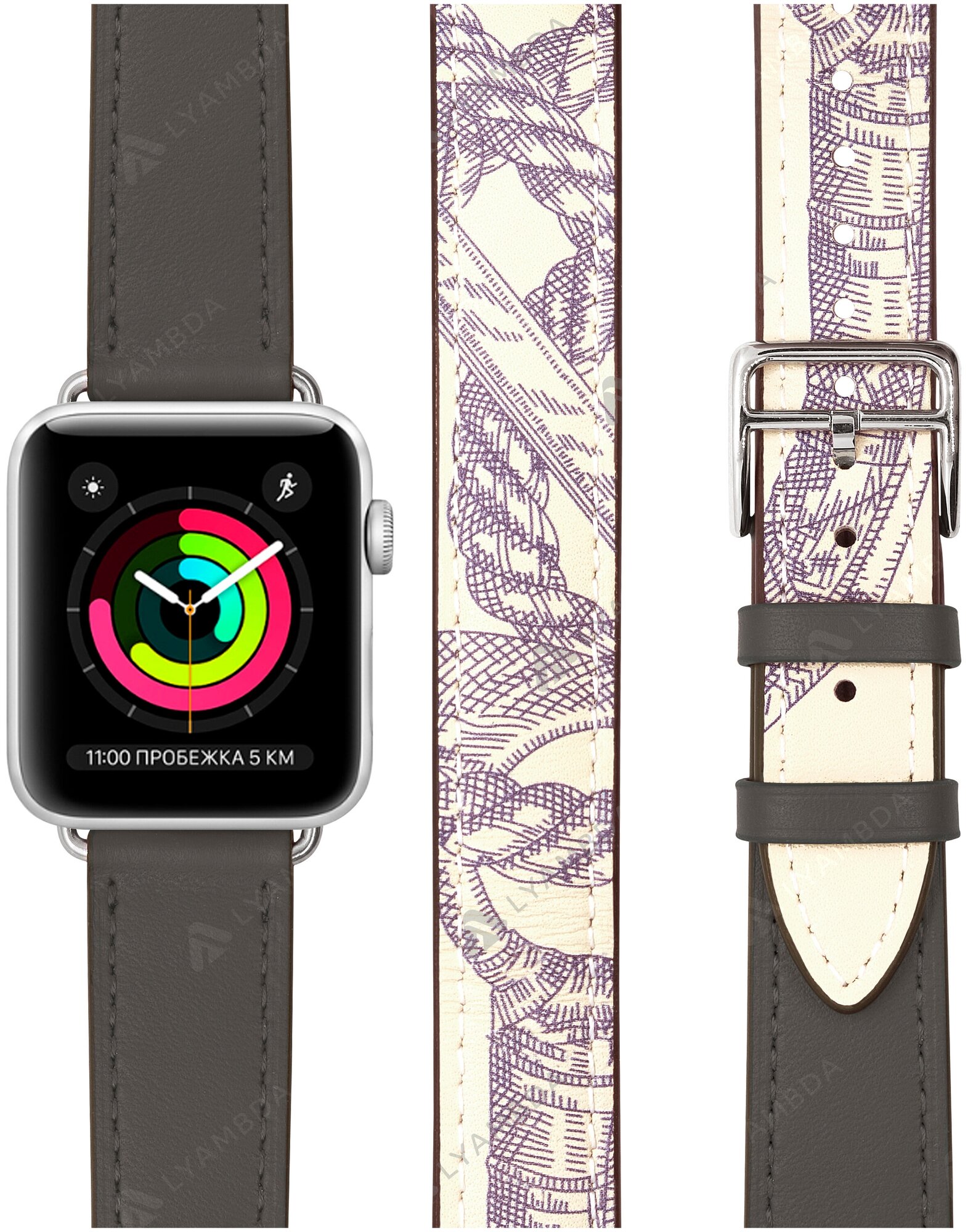 Кожаный ремешок в два оборота для Apple Watch 42/44/45 mm LYAMBDA MERIDIANA LWA-01-44-GRP Gray/Beige rope информация: