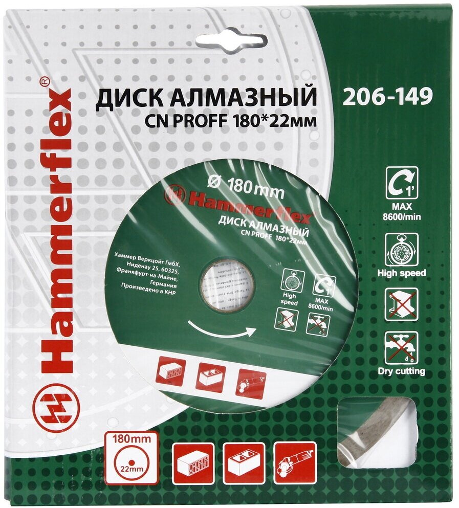 Диск алмазный отрезной Hammer Flex 206-149, 180 мм 1 информация: