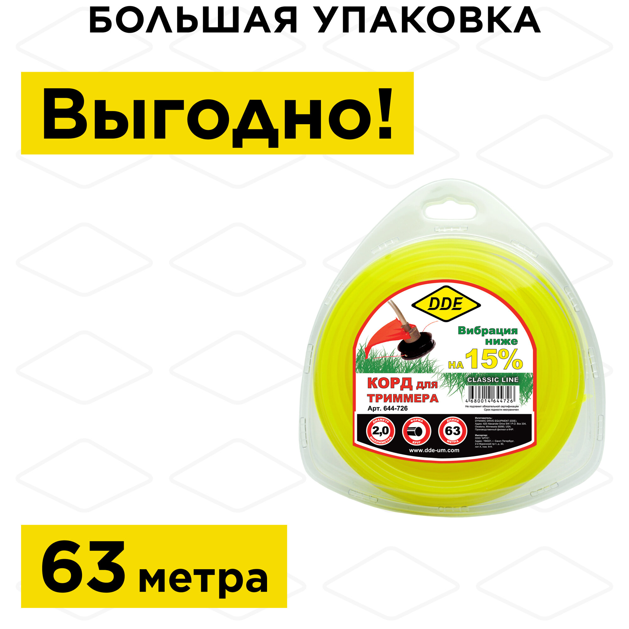 Леска триммерная DDE CLASSIC LINE 2.0-63 М (круг) информация: