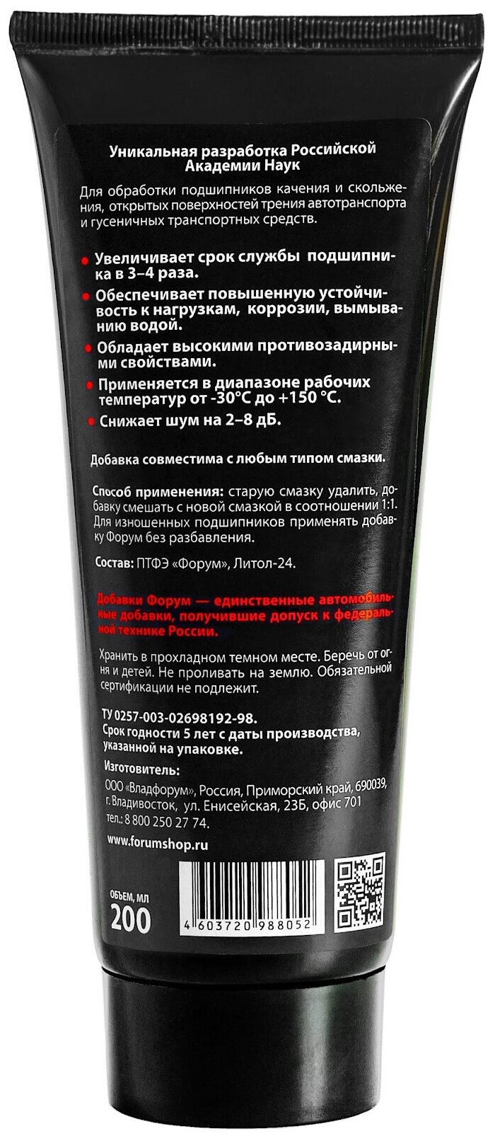 Добавка в смазку FORUM, для подшипников, туба 200мл, арт. 88052 599 ₽
