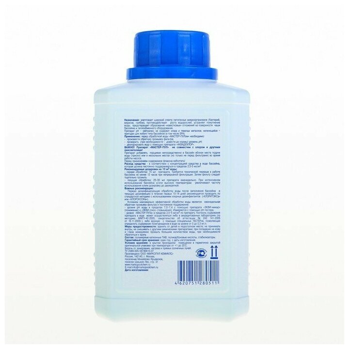 Мастер-пул жидкое средство "4 в 1", флакон 0,5л. Для комплексной обработки воды. информация: