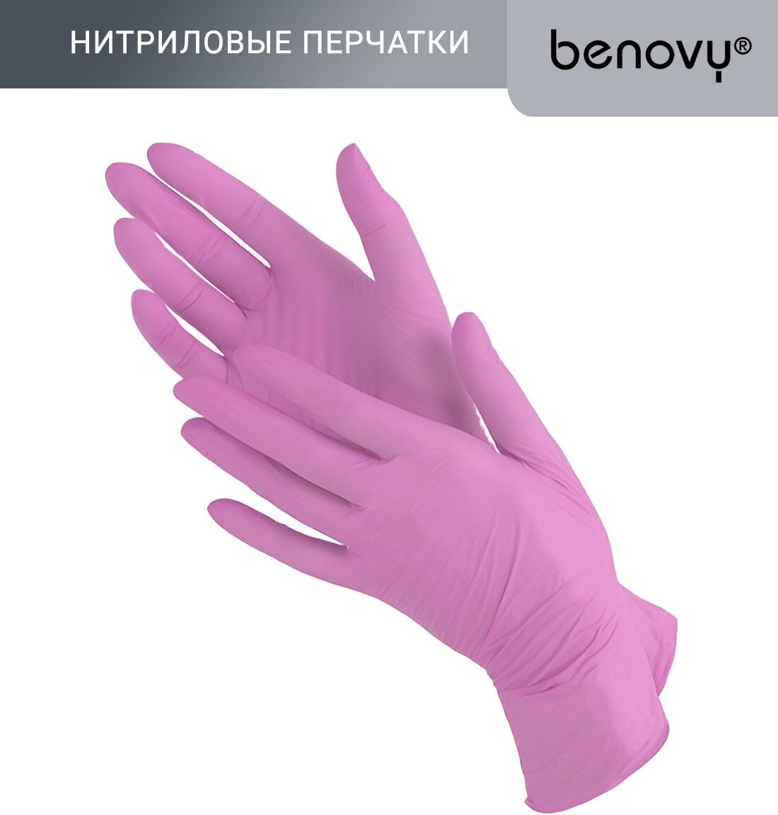 Перчатки медицинские Benovy, нитриловые, неопудренные, нестерильные, размер M, 50 пар, сиреневые