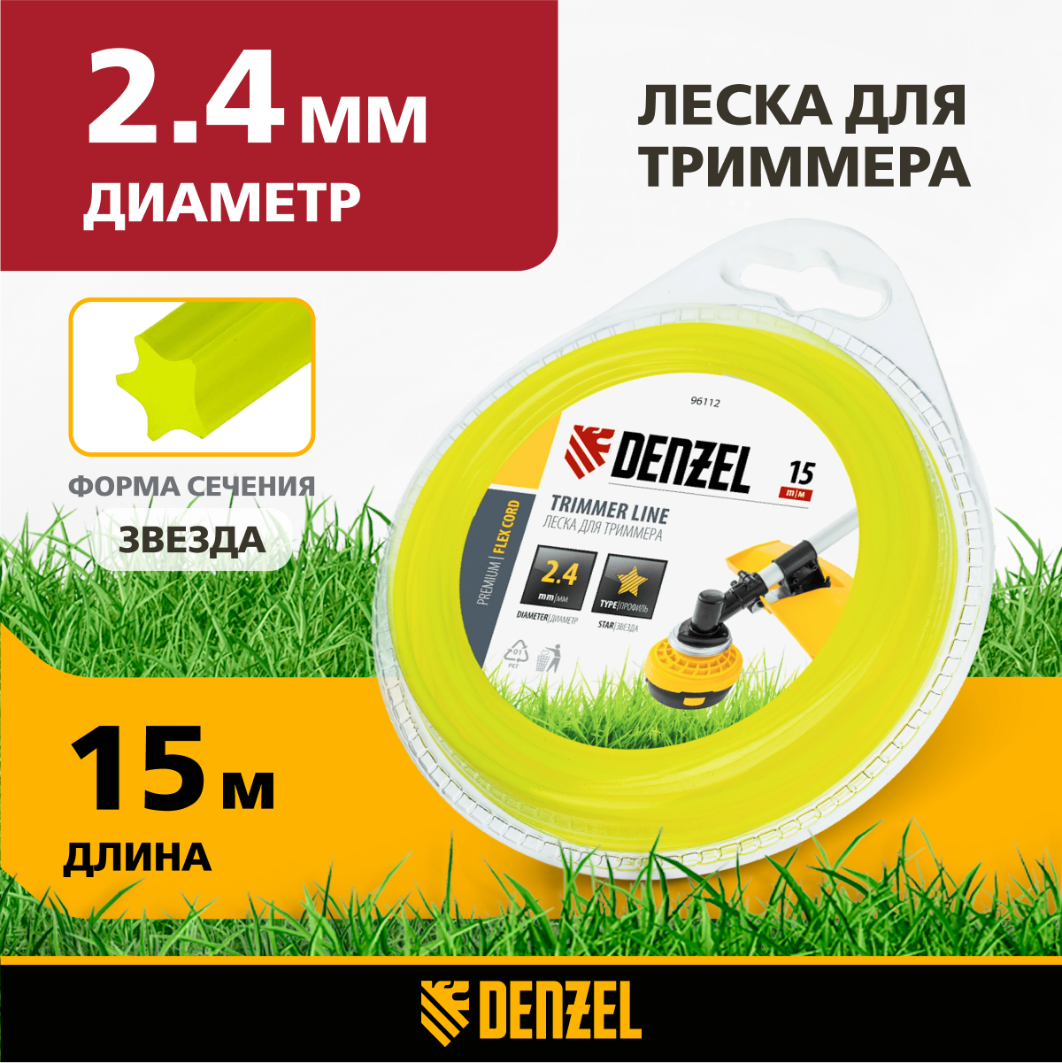 DENZEL 96112 Леска для триммера, звезда 2,4 мм x15 м, блистер Flexcord Denzel 96112 1шт