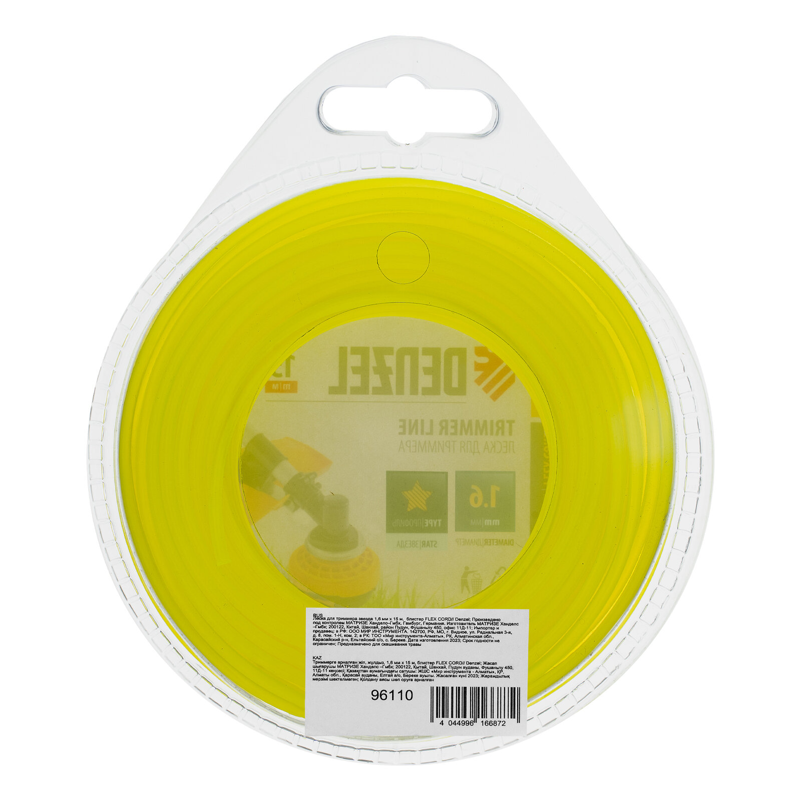 Леска для триммера Denzel звезда 1 6 мм х 15 м, блистер FLEX CORD 96110