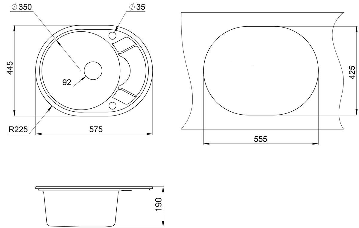 Мойка гранитная EMAR 575х445х190 мм EMQ-1575.C Оникс