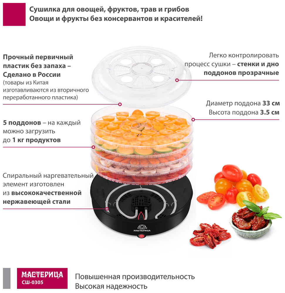 Сушилка для овощей и фруктов Мастерица СШ-0305 150Вт черная информация: