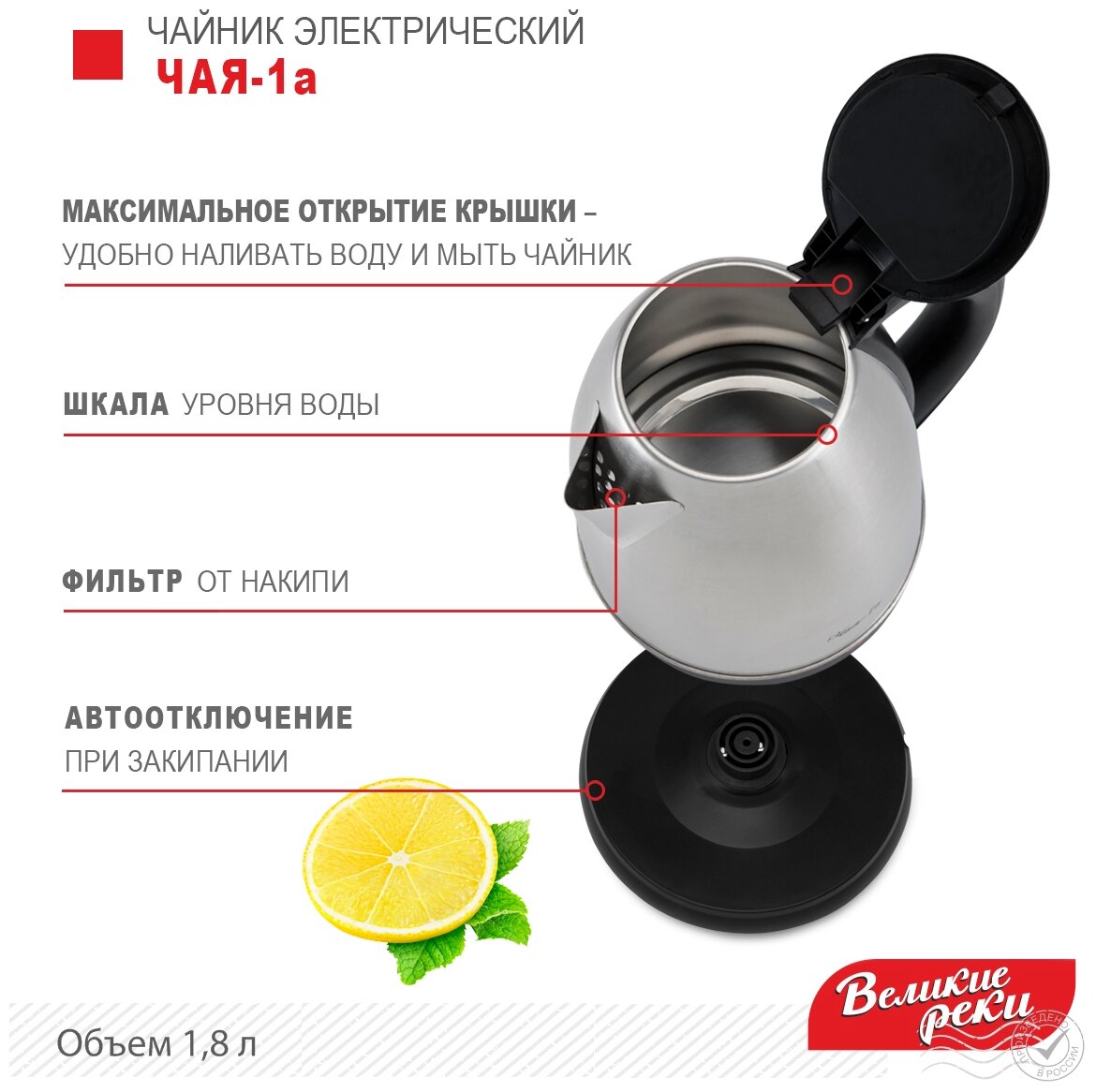 Чайник электрический Чая-1а матовая нерж., (1,8л. 1500 Вт) Великие Реки информация:
