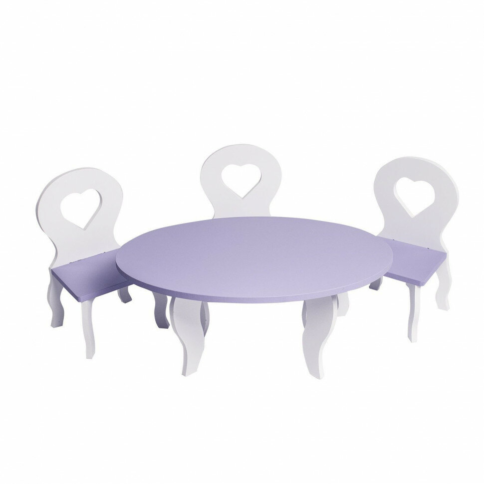 Набор мебели для кукол Шик (стол + стулья) Белый/Фиолетовый