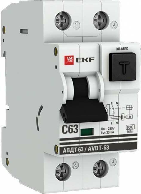 Автоматический дифференциальный выключатель EKF АВДТ-63 2п 16А 30мА DA63-16-30 .