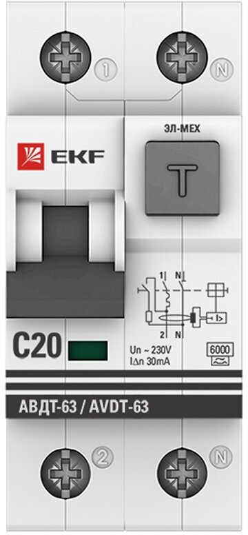 Автомат дифференциальный EKF АВДТ 63 (DA63-20-30) 20А 30 мА 1P+N тип A 6 кА