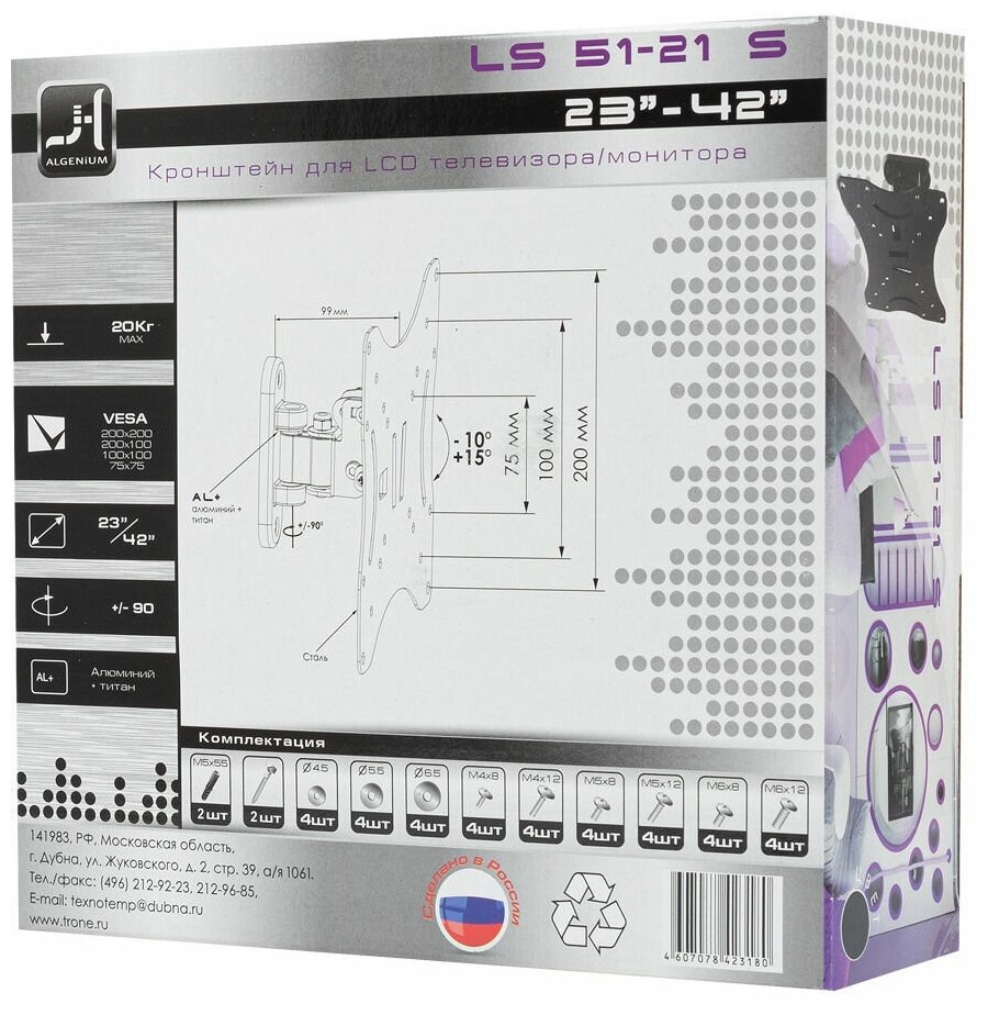 Кронштейн для телевизора ALGENIUM LS 51-21 S для 23-42 до 20 кг, чёрный