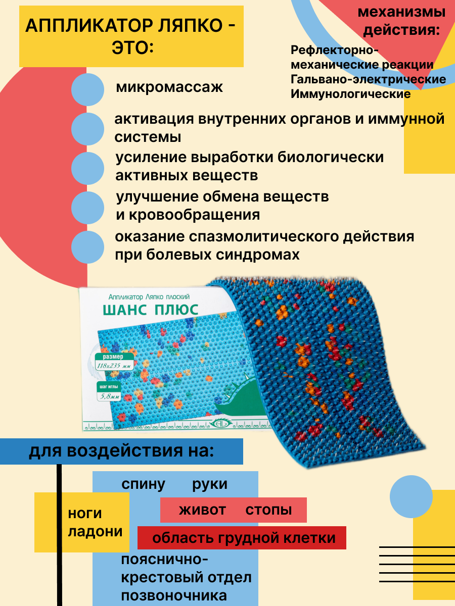 Массажер аппликатор коврик Ляпко Шанс-плюс 6,2, шаг игл 6.2 мм (23.5 x 11.8 см, игл - 750 шт.), в ассортименте