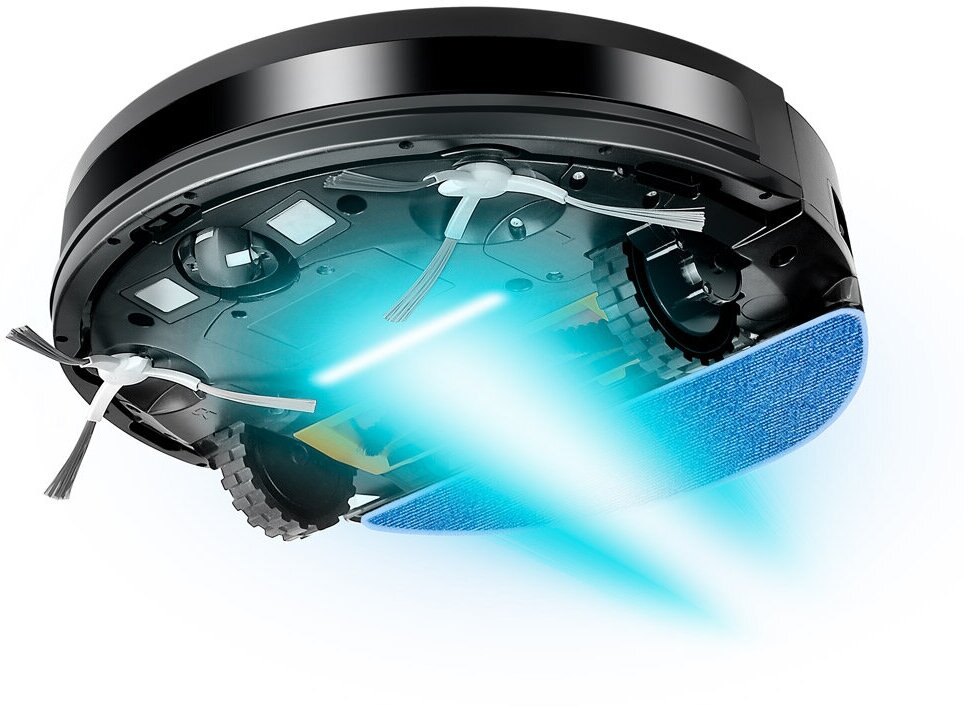 УФ обработка пола, сухая и влажная уборка, управление с пульта и с телефона, хорошая мощность всасывания.