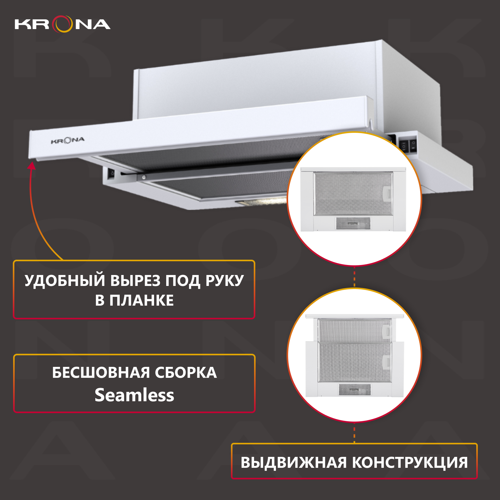 Встраиваемая вытяжка KRONA KAMILLA 1M 500 BROWN