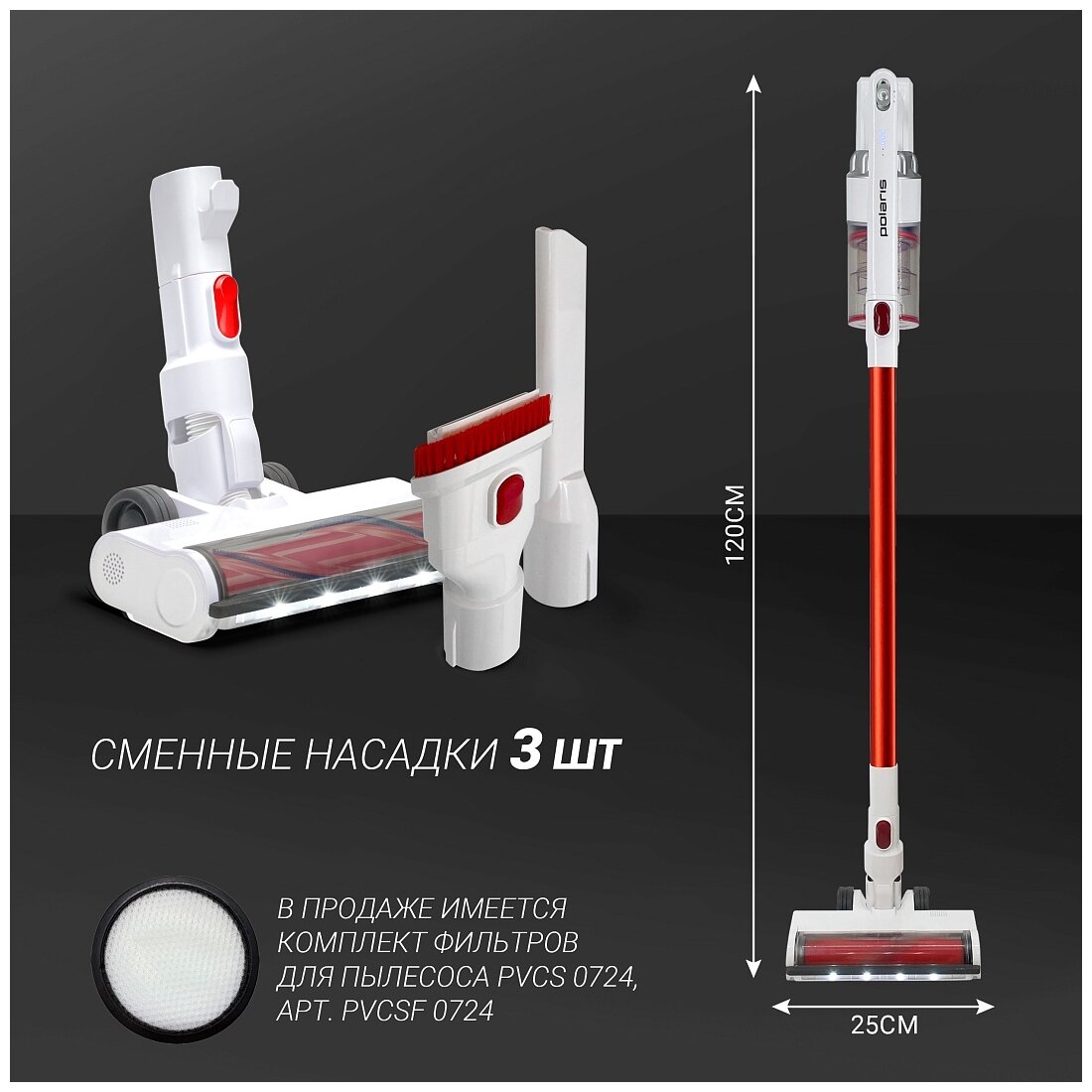 10 цен на Пылесос портативный Polaris Pvcs 0724, Бело-красный .
