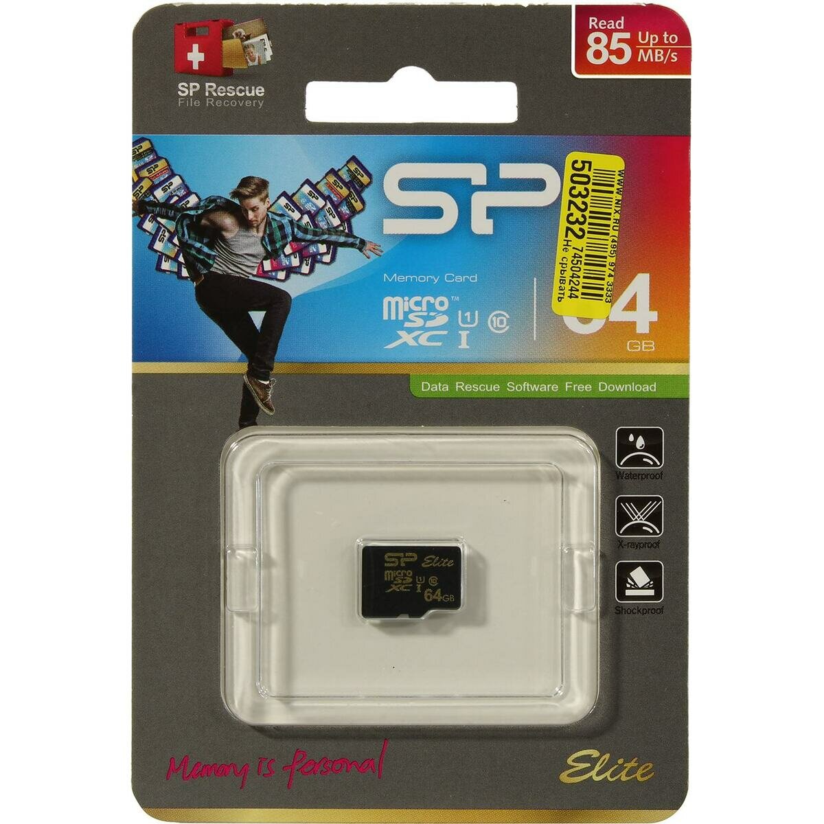 Карта памяти Silicon Power Elite microSDXC 64 ГБ Class 10, UHS Class 1, U1, R 85 МБ/с, адаптер на SD