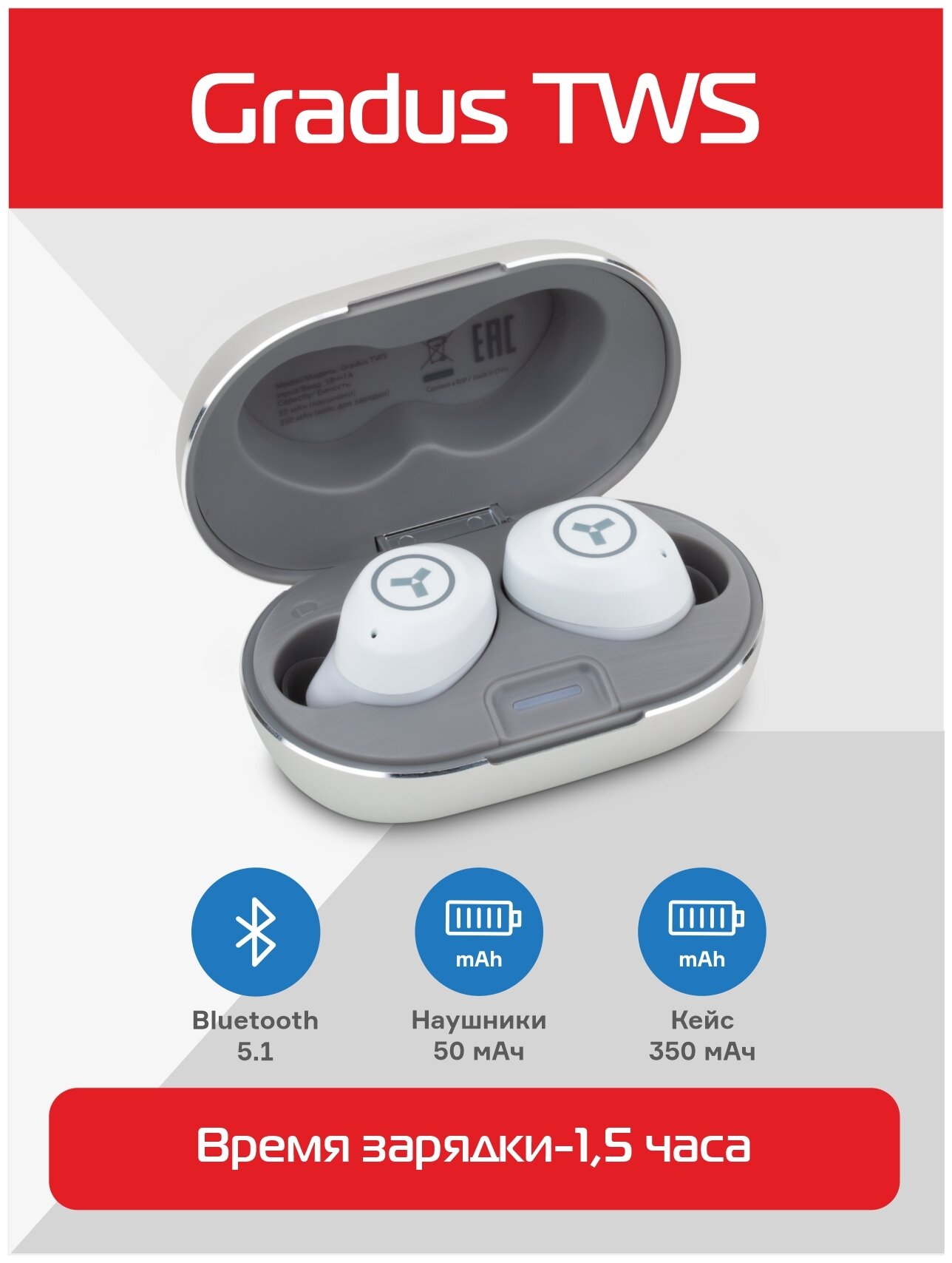 Гарнитура ACCESSTYLE Gradus TWS, Bluetooth, вкладыши, белый [gradus tws white] 1 790 ₽
