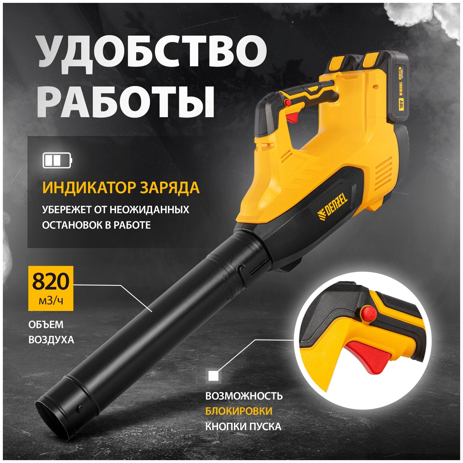 10 цен на Воздуходувка аккумуляторная DENZEL RB180-36, Li-ion, 36 В, 4 Ач, 180 км/ч, 820 м3/ч