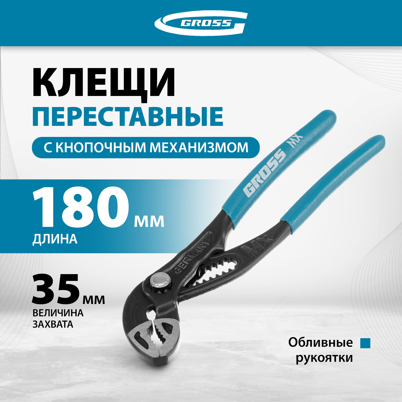 Клещи переставные, кнопочный механизм, обливные рукоятки, 180 мм Gross информация: