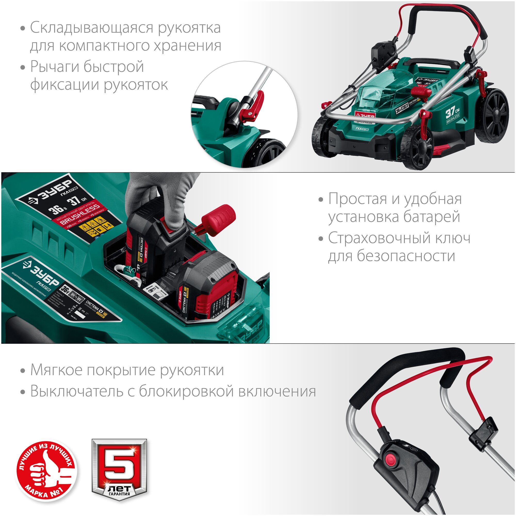 Бесщеточная газонокосилка ЗУБР 36 В ГКЛ-3736
