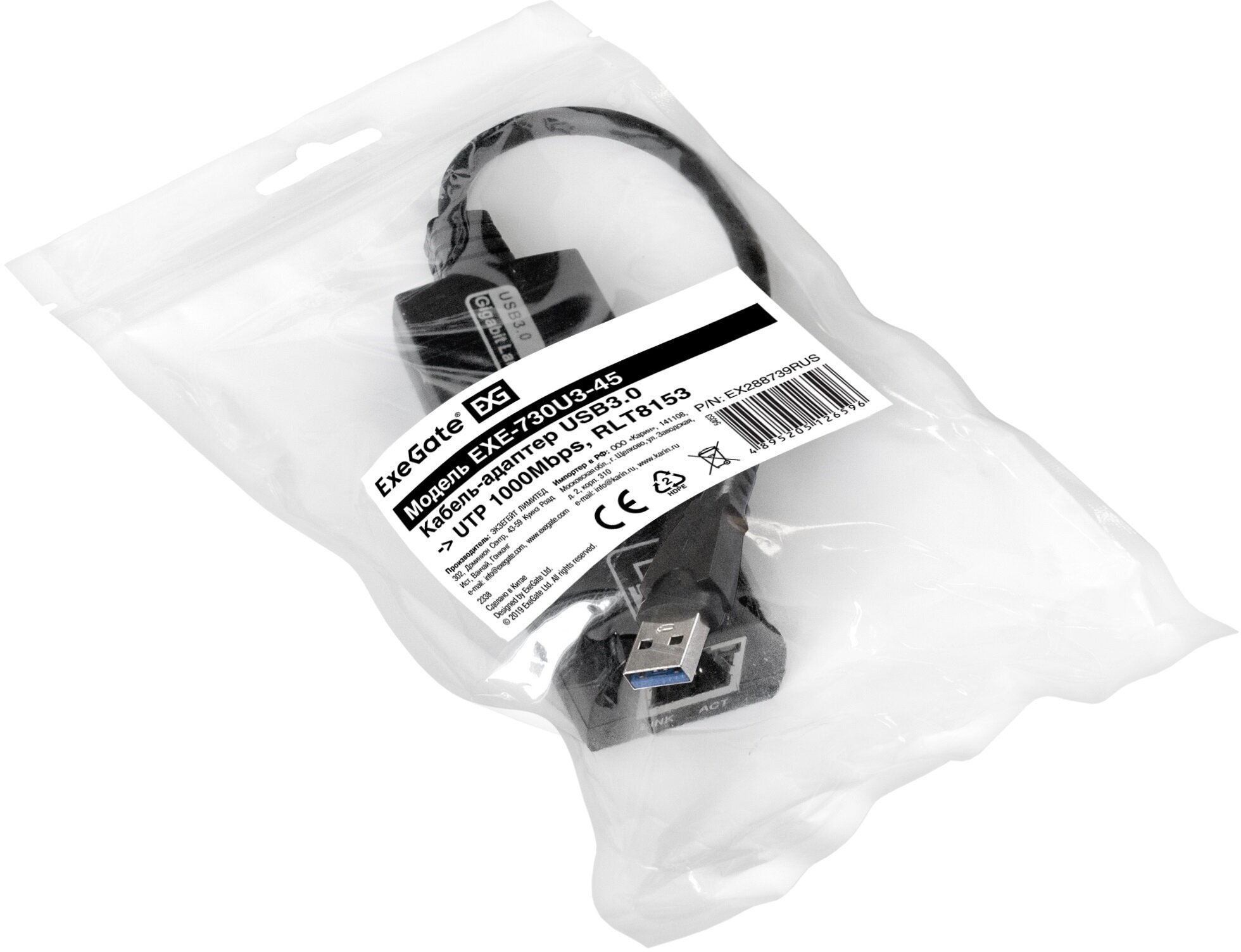 10 цен на Кабель-адаптер ExeGate EXE-730U3-45 (USB3.0 --> 1xRJ45 UTP 1000Mbps, Realtek Chipset RLT8153) EX288739RUS