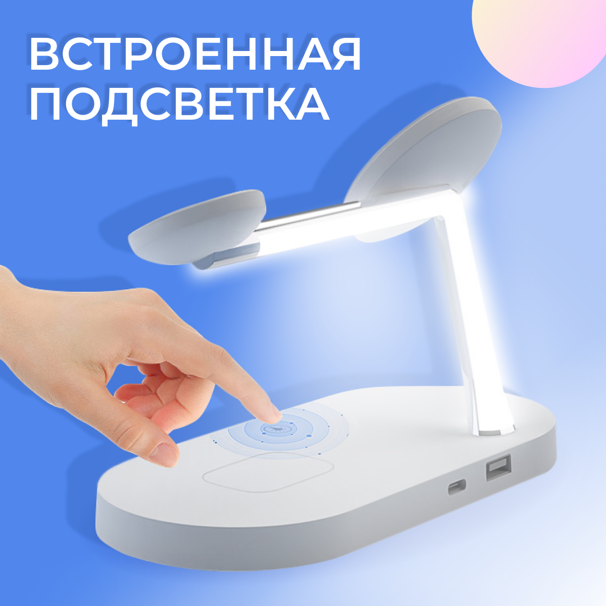 10 цен на Беспроводная док станция 5 в 1 MagSafe 15W для Apple iPhone, Apple Watch и AirPods с подсветкой ночником/ Зарядка на Эпл Айфон, Эпл Вотч и Айрподс
