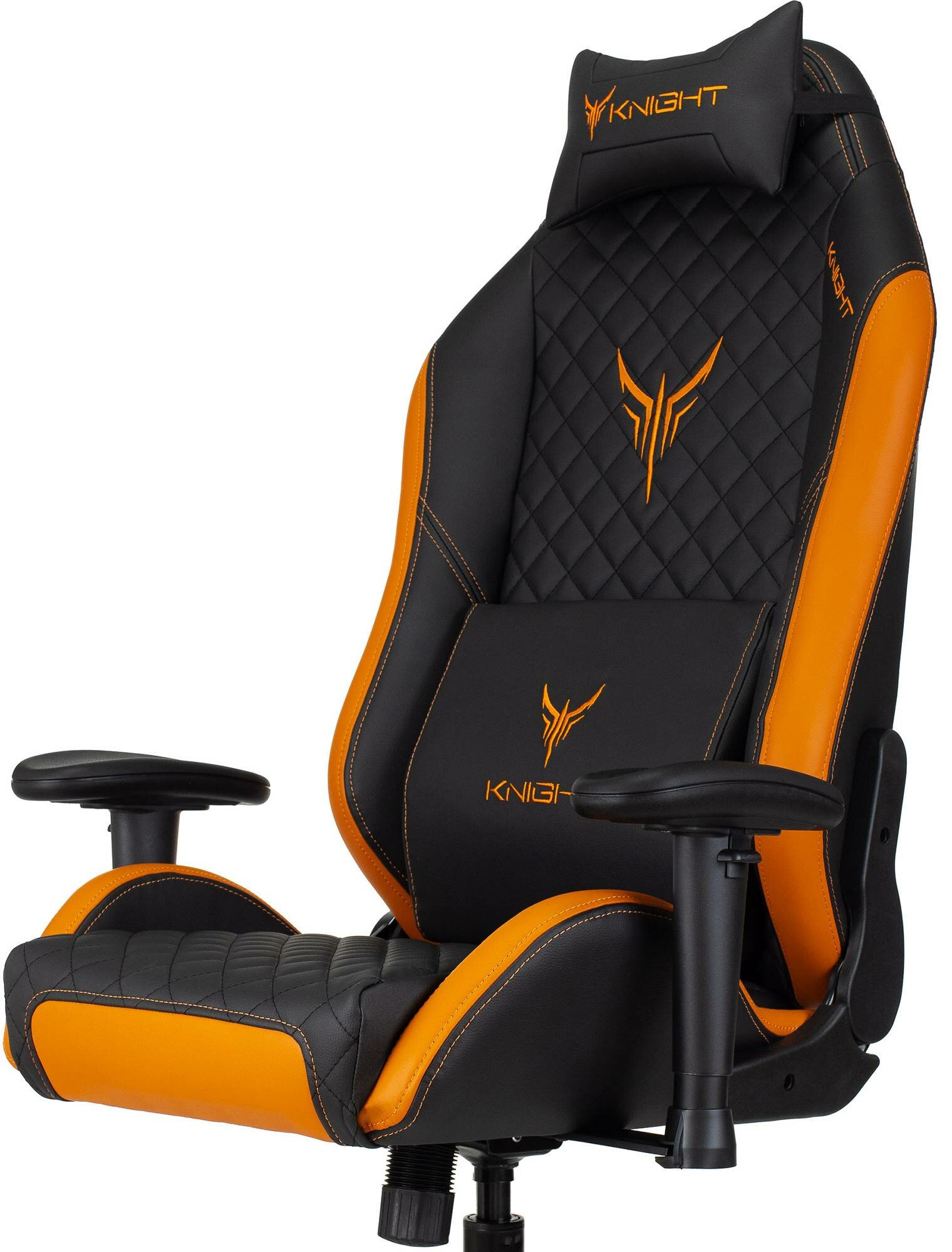Кресло игровое Knight Explore, обивка: эко.кожа, цвет: черный/оранжевый, рисунок ромбик информация: