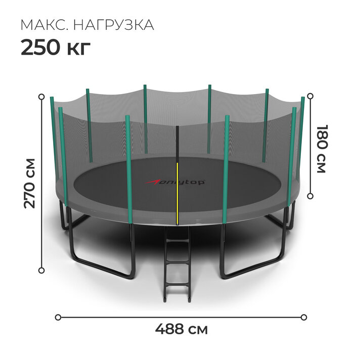 ONLITOP Батут ONLITOP, d=488 см, с лестницей, с сеткой высотой 173 см 40 755 ₽