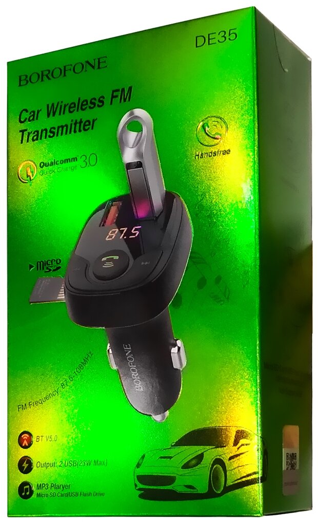10 цен на FM - Трансмиттер BOROFONE DE35 Soaring, 2*USB, 3A, черный, дисплей,SD/BT