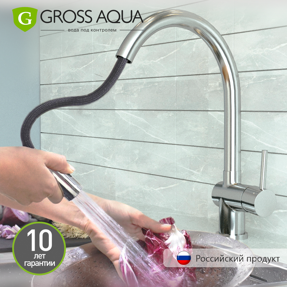 Смеситель для кухни (мойки)Gross Aqua с высоким, вытяжным изливом Extra, хром.