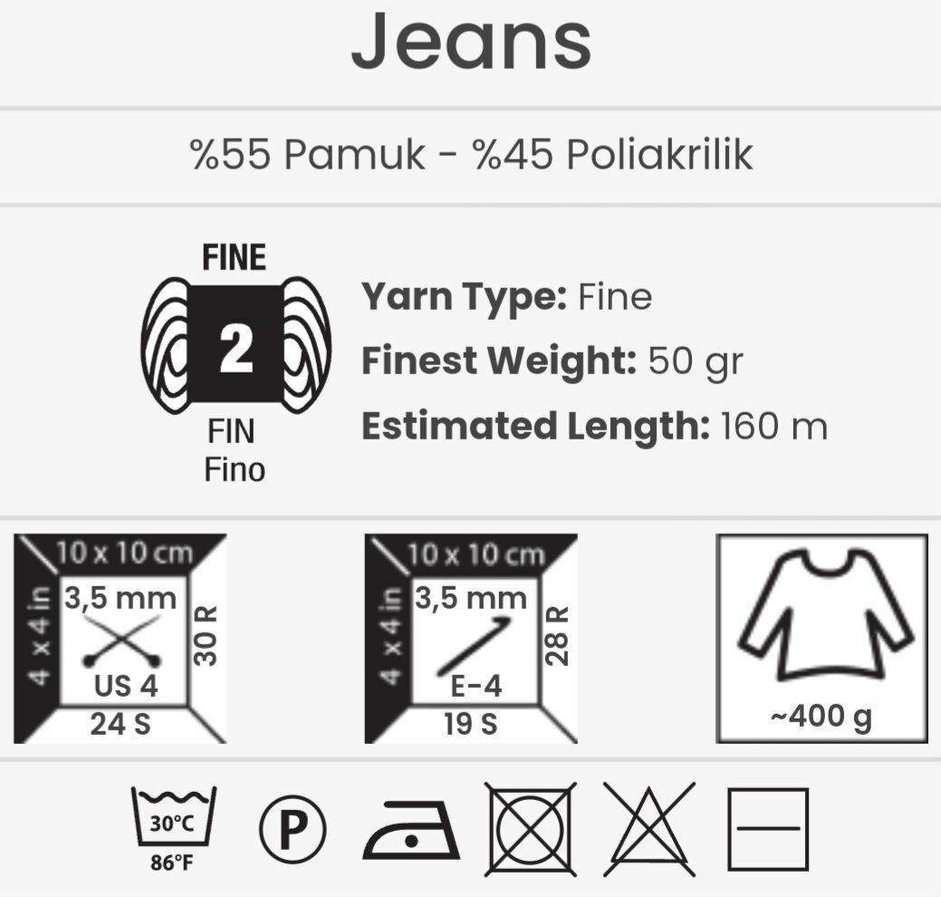 Пряжа YarnArt Jeans, 55 % хлопок, 45 % акрил, 50 г, 160 м, 5 шт