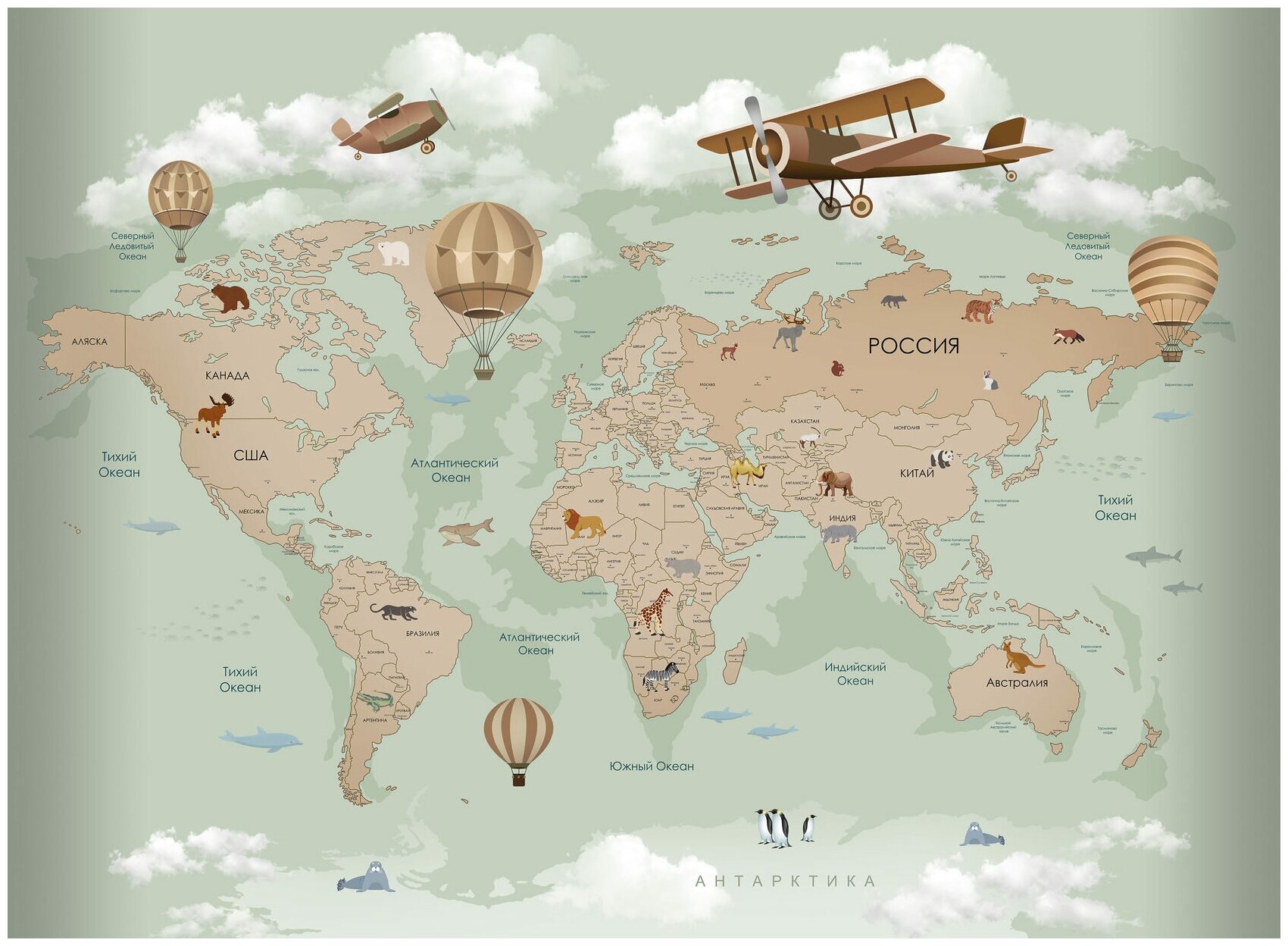 Фотообои бумажные детские Симфония Волшебная карта мира К-179 1.4х2м
