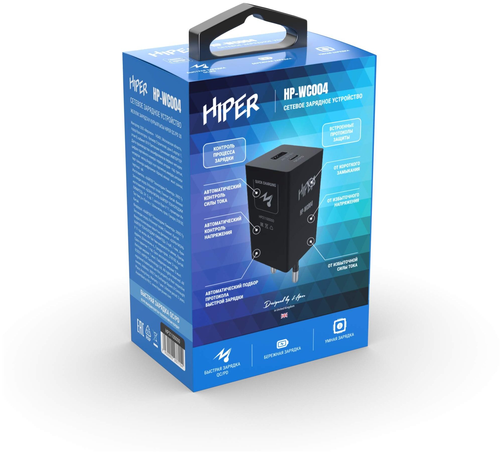 Сетевое зарядное устройство HIPER HP-WC004, USB-C + USB-A, 3A, черный