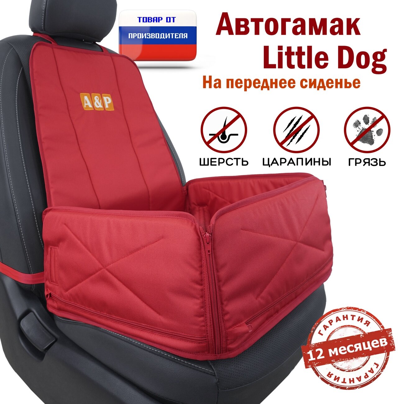 Автогамак Little Dog (Литл Дог) на переднее сиденье. Цвет: красный. информация: