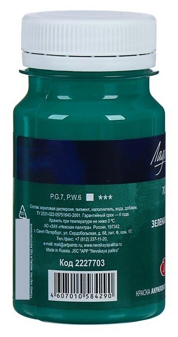 Краска акриловая "Ладога" 100 мл 2227704 окись хрома 346 ₽
