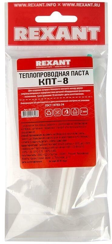 Rexant Паста теплопроводная КПТ-8 шприц 2мл REXANT 09-3751 информация: