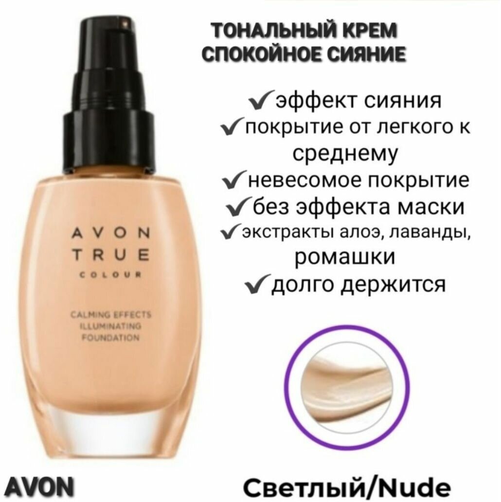 Отзывы на AVON Тональный крем True Colour Спокойное сияние, 30 мл, оттенок: натуральный/nude