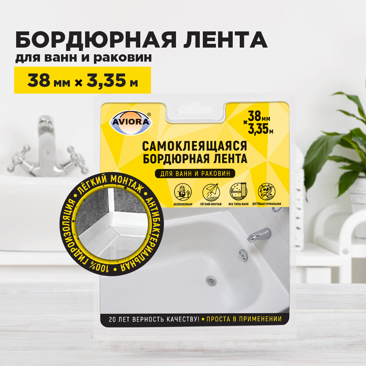 Лента бордюрная для ванн и раковин Aviora, 38 мм x 3,35 м, белая 1 097 ₽
