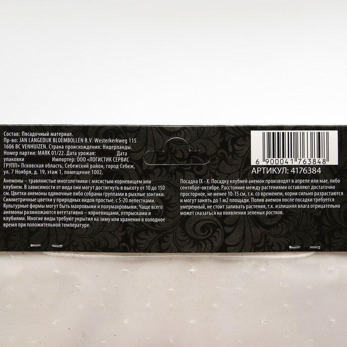 10 цен на Сады Дедушки Никиты Анемона корончатая "Биколор", р-р 4/5, 10 шт, Весна 2023