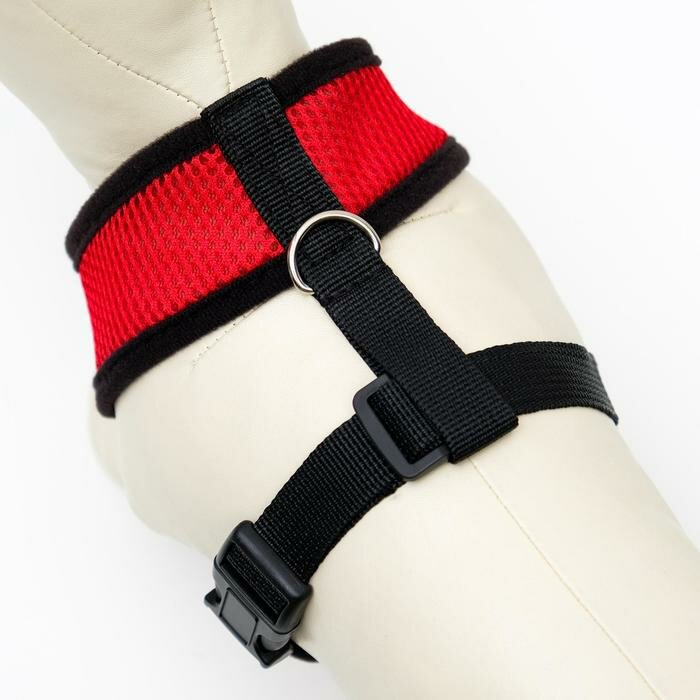 Шлейка мягкая из неопрена, размер M, ОШ 34 см, ОГ 32-42 см, красная информация: