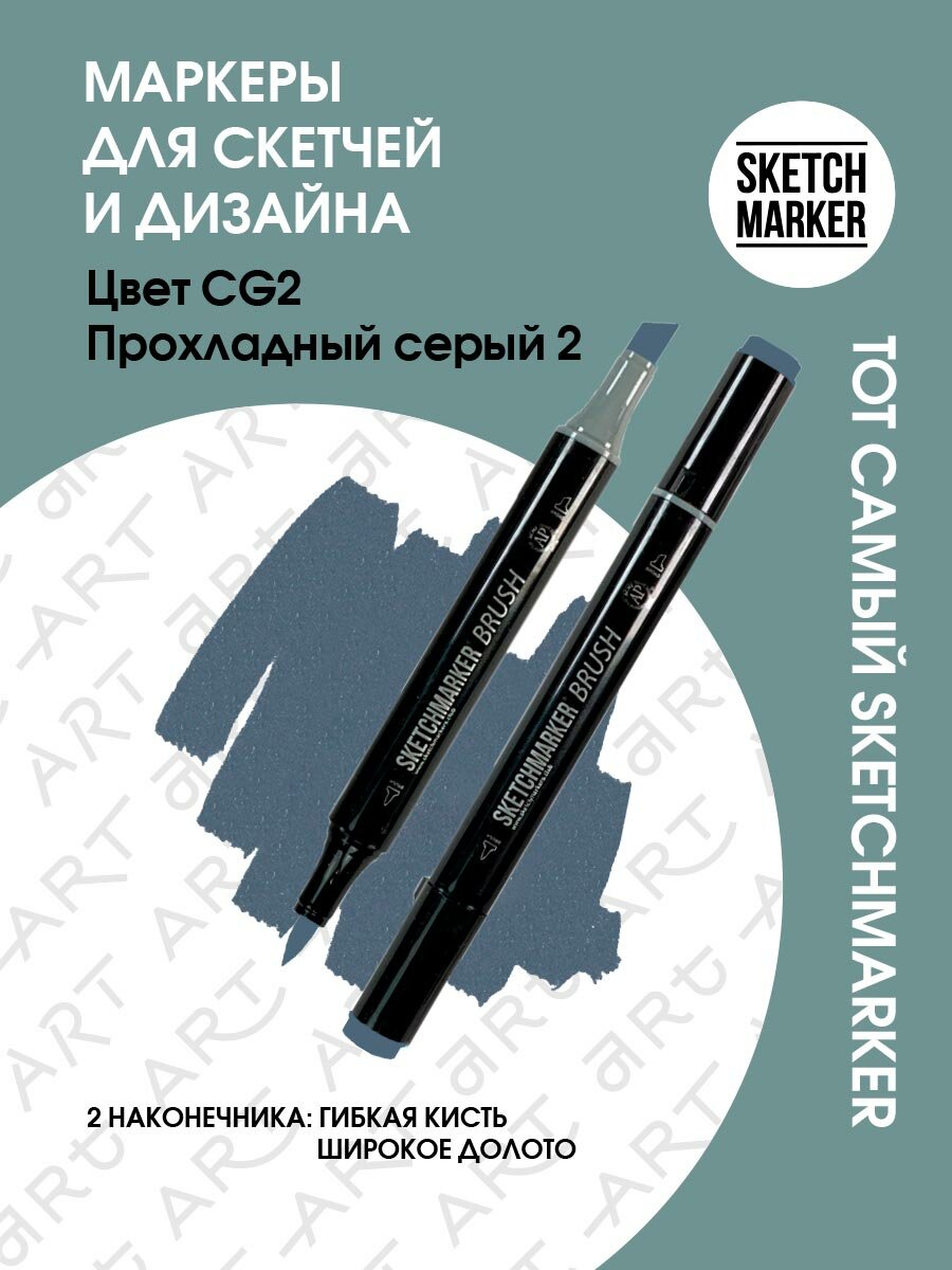 Двусторонний заправляемый маркер SKETCHMARKER Brush Pro на спиртовой основе для скетчинга, цвет: CG2 Прохладный серый 2 информация: