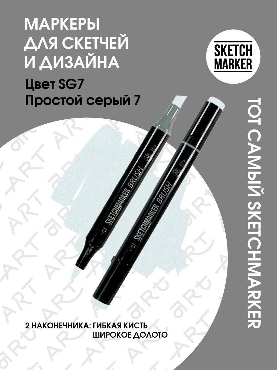 Двусторонний заправляемый маркер SKETCHMARKER Brush Pro на спиртовой основе для скетчинга, цвет: SG7 Простой серый 7 информация: