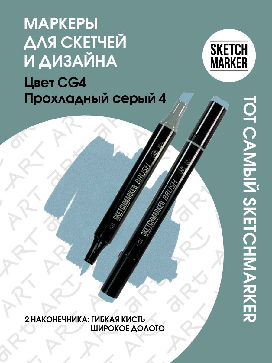 Двусторонний заправляемый маркер SKETCHMARKER Brush Pro на спиртовой основе для скетчинга, цвет: CG4 Прохладный серый 4 информация: